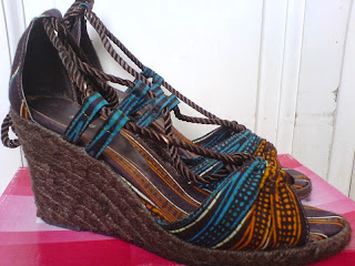 Espadrilles en tissus, motifs ethniques chics africains, compensées à lacet de chez André.